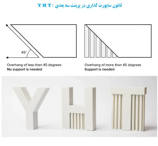توجه کنید که همیشه نیاز به تنظیم کردن ساپورت ندارید و برای مدلهای خاص و پیچیده کاربرد دارد، اگر مدل سه بعدی دارای ساختاری با زوایای بیش از ۴۵ درجه باشد، استفاده از ساپورت الزام آور است. در غیر این صورت این بخشها حین چاپ بدون تکمیل، فرو میریزد.