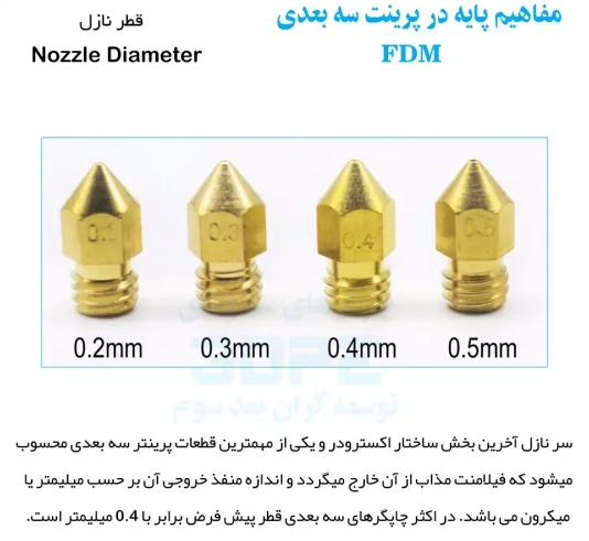 نکته ۱: قطر نازل در حالت معمول چندان مهم نیست و عامل اصلی تنظیم صحیح نرم افزار اسلایسر با توجه به نازل نصب شده روی پرینتر سه بعدی شماست.