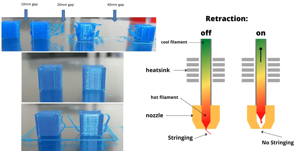 ویژگی Retraction باعث میشود که چاپگر سه بعدی فرآیند تمیزتری هنگام پرینت، بواسطه عقب کشیدن جزیی جریان فیلامنت نازل داشته باشد (فرض کنید نازل نیاز به یک gap در حین چاپ داشته باشد). افراد مبتدی به سختی قادر هستند بهترین تنظیم را برای این گزینه پیدا کنند، پس پیشنهاد میشود حالت پیش فرض یا سفارش شده توسط سازنده دستگاه را باقی بگذارید.